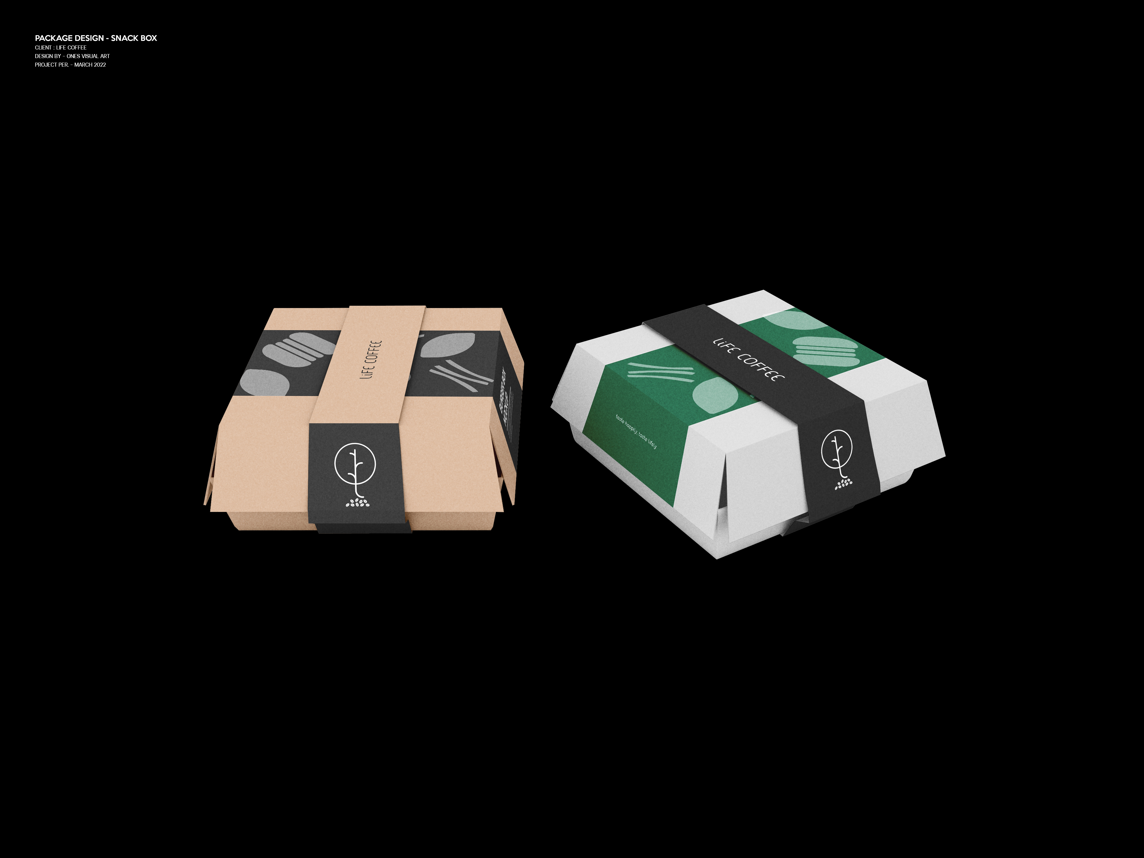 This project showcases the comprehensive packaging design system developed for "Life Coffee," a brand aiming to provide delightful coffee experiences and possibly associated food items. The design philosophy centers on a harmonious blend of natural aesthetics, brand clarity, and functional packaging, creating an engaging and memorable unboxing and consumption experience for customers.